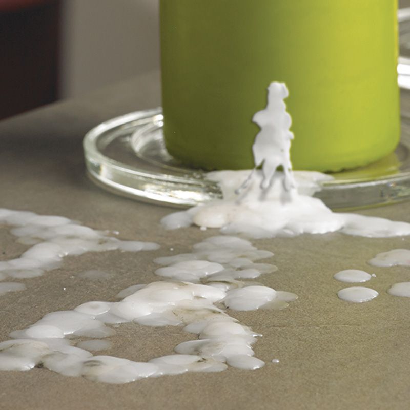 왁스가 떨어지는 것을 제거하려면 ZEROSIL*을 사용할 수 있습니다 . 희석하지 않은 제품을 얼룩 전체에 바르고 20분간 방치한 다음 키트에 포함된 주걱으로 긁어냅니다. 그런 다음 종이 타월이나 천으로 잔여물을 집어 올릴 수 있습니다.